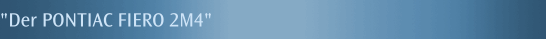 Der Pontiac Fiero. Oft belächelt wegen seiner Form und dem Motor! In diesem Fall ein 2,5 liter Motor mit ca.90 PS! Ca. deshalb weil diese Motoren oft keine genauen PS-Zahlen aufweisen, mal mit 90 dann mit 112 oder auch mal 98 PS ! Das 2M4 steht für Zweisitzer mit Mittelmotor und Vier Zylindern! Sicher es gibt ihn auch mit V6 Motor und 2,8 liter und dann 130 bis 150 PS! Und dann gibt es noch Leute die Zeit und Geld nicht scheuen und Bauen hier ein V8 ein, oh doch sicher, der passt auch rein!
