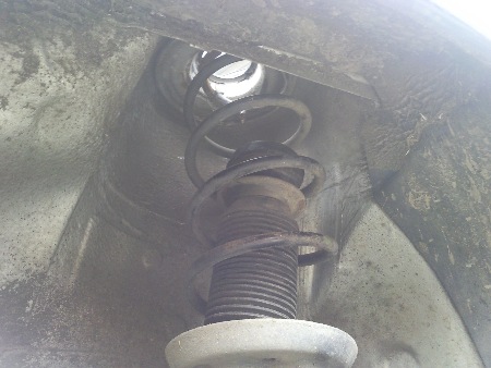 Ok ... wenn man einen Wagenheber ansetzt ohne Domteller auf dem Lager kommt das Federbein etwas runter, aber wenn die Feder dann über den Federteller unterm Lager sich den weg ins Freie sucht kommt das nicht gut! Hier hat der Federteller die Feder nie richtig gehalten was man am Teller selber sehen kann den der ist sauber und ohne druckspuren der Feder! Gehalten nur durch Druck von unten im Gehäuse und oben nur der Domteller drauf! Sowas ist echt nicht gut!!!!!!!!!!!